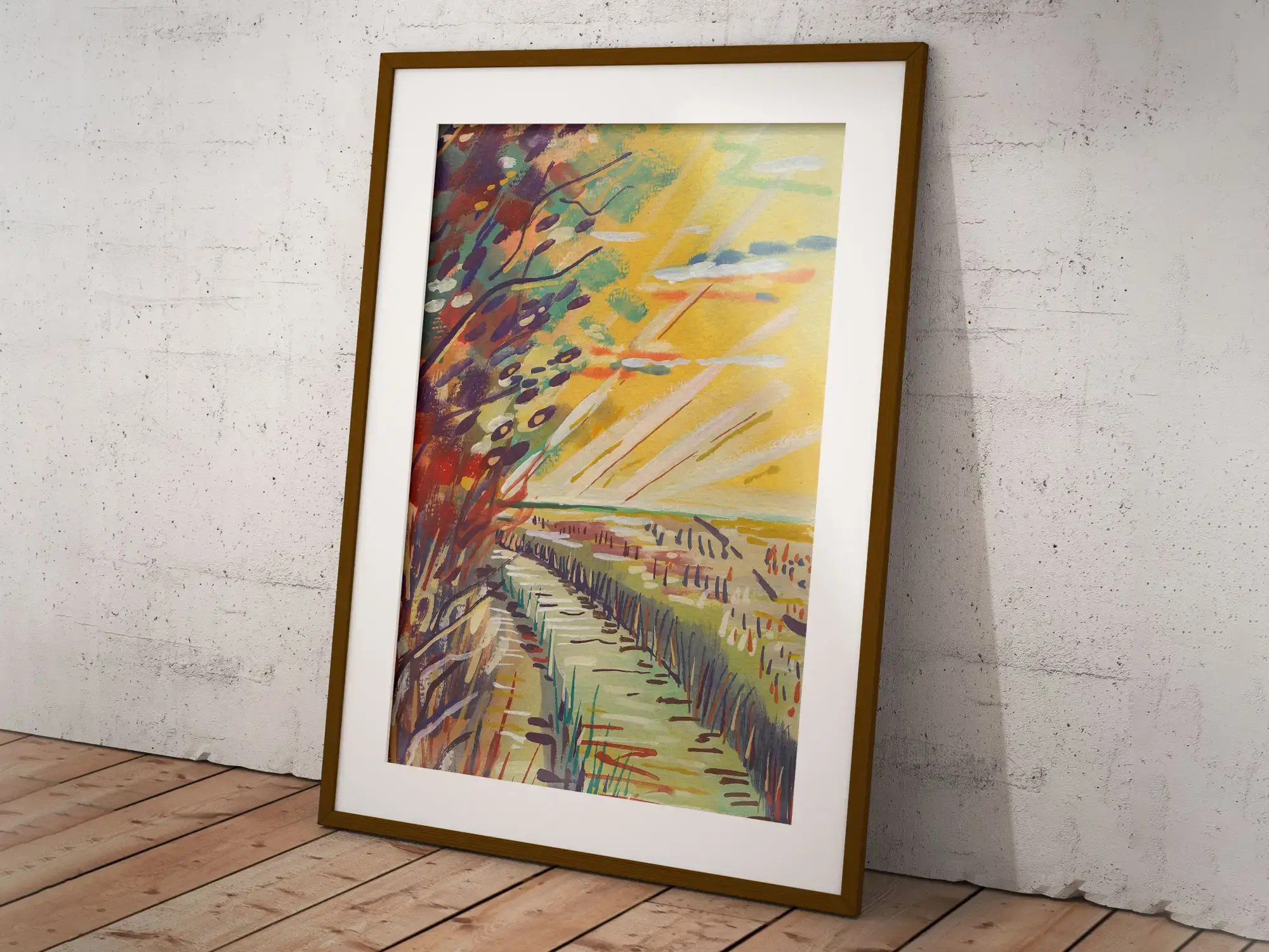 This gouache painting packaged & protected in a cellophane sleeve, and a cardboard backing to ensure it gets to you in the best condition possible. Free delivery to all UK customers, sending 2nd class with a process time of 1-2 days. Sending this landscape painting tracked & signed to Europe & Worldwide, with a process time of 1-2 days, with delivery of 5-12 days. —