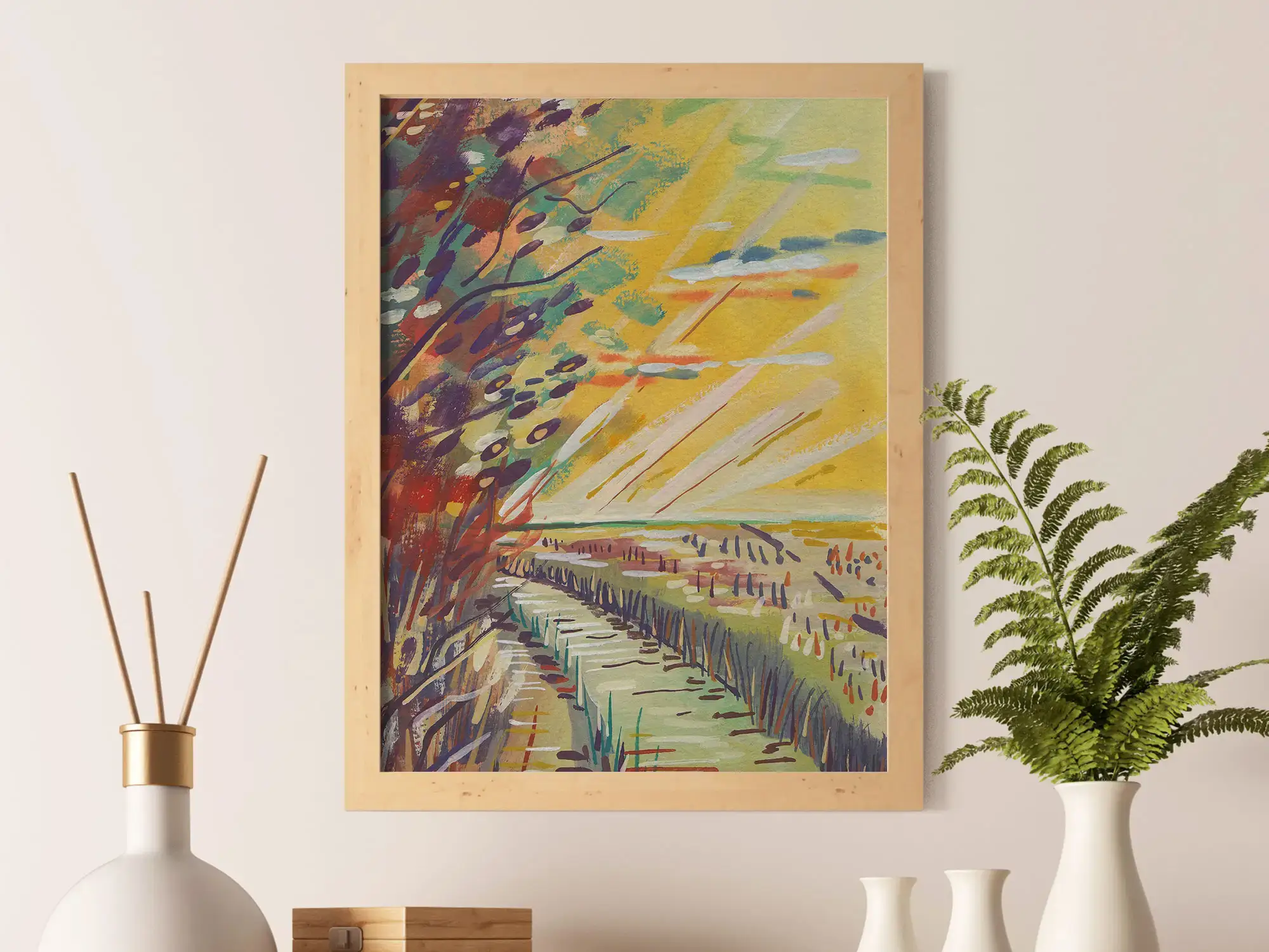 Haydn Symons is an Illustrator and Designer who creates unique art prints, and greetings cards, original paintings, just like this landscape painting.